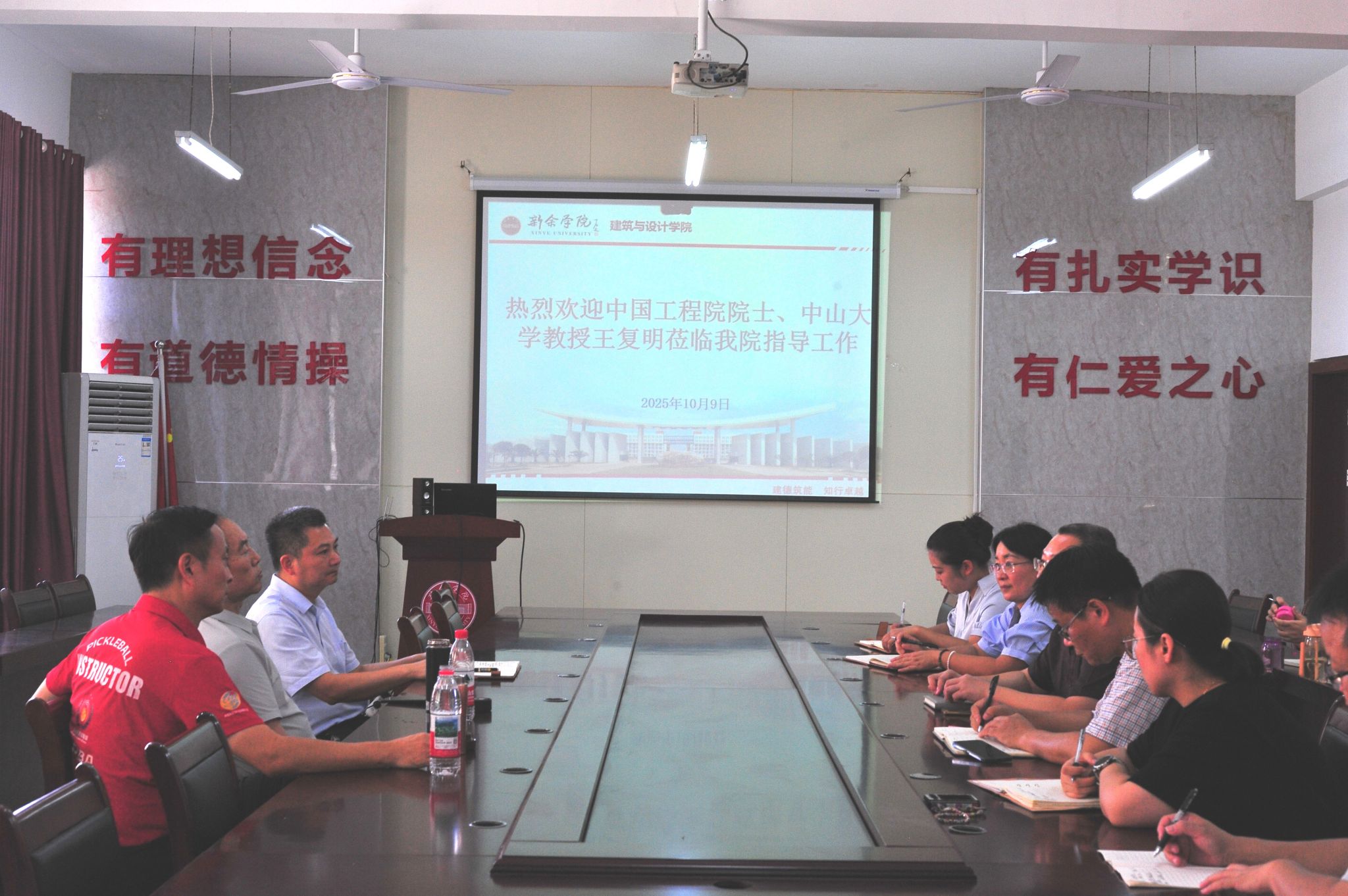 10月9日下午,我校党委书记伍复康亲切接待了中国工程院院士、中山大学王复明教授、全国政协委员、江西师范大学张玉清教授一行,在我院会议室召开学科建设规划研讨会。会上,党委书记徐理对学院人才培养、科技创新、社会服务等工作做了汇报,副院长潘洪科对学科建设规划进行了汇报。王复明院士肯定了我院近些年来紧扣装配式建筑与智能建造领域所取得了成绩,从中山大学学科建设实践经验出发,对学科建设方向凝炼、学科团队建设、学科平台打造、学科成果培育等方面进行了详细指导。