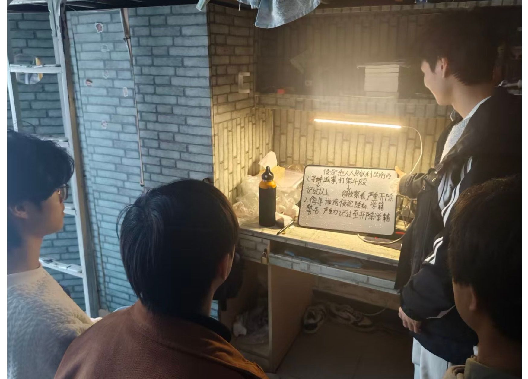 “鲁班夜语”是学院依托学生宿舍生活共同体开展日常教育引导的特色载体。本次活动继续发挥宿舍作为基本学习单元的优势,在宿舍长或学生骨干的组织下,对《实施细则》第三章所列举的各类侵犯他人人身权利的行为进行了系统性学习。学习内容涵盖了侵犯他人身体、侮辱诽谤、威胁恐吓、侵犯隐私、骚扰等行为的界定、情节认定及相应的处分规定。
