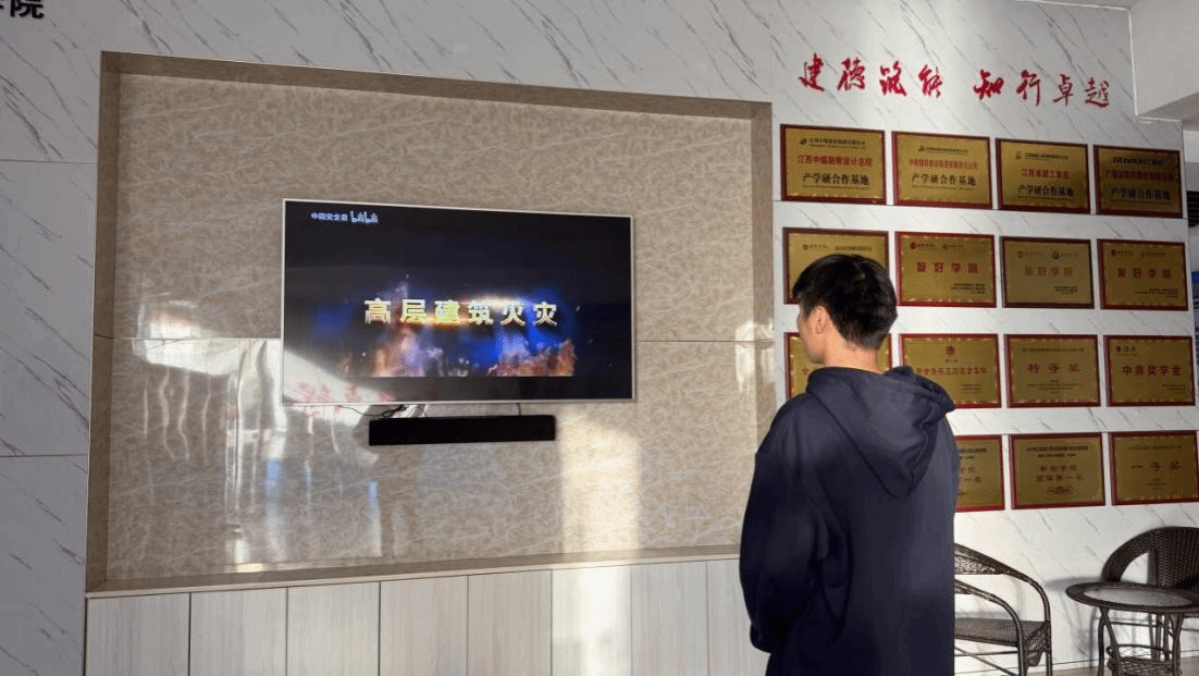 以宣传教育为基础,学院多渠道推动消防安全入人心。各班级主题班会上,班主任结合典型火灾案例,向学生讲解火灾成因、初期处置、逃生路线及消防器材使用要点,引导树立“安全第一、预防为主”理念。与此同时,学院在一楼公共区域循环播放消防警示片,通过真实场景、伤亡数据与逃生技巧演示,让师生直观感受火灾危害,深化安全认知。从班会“点对点”讲解到公共区域“广覆盖”播放,多形式宣传让安全知识自然融入师生日常。